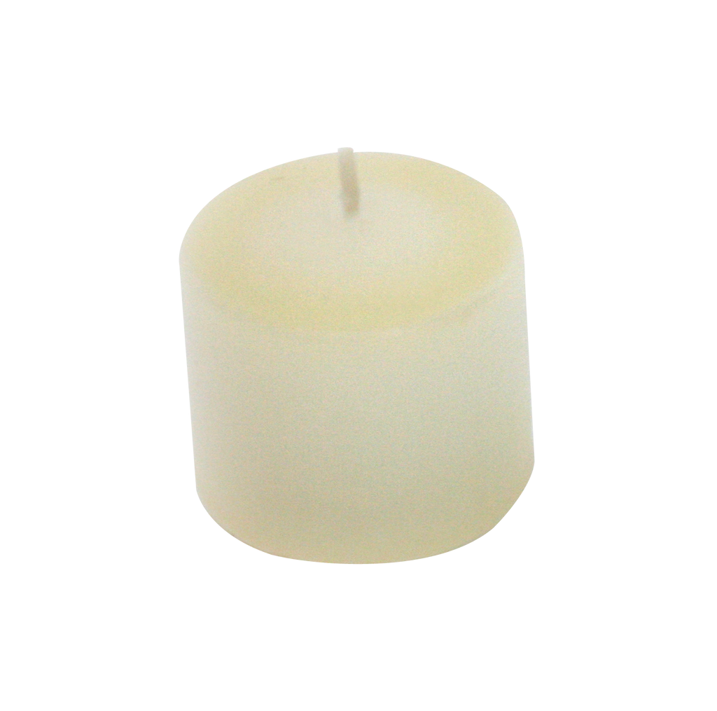 Place these quality unscented candles into your votive holders. These candles have a white core, coated with colored unscented wax. Burn time is approximately 10 hours.